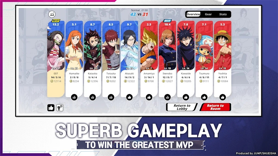 1. IP全明星阵容:涵盖《周刊少年Jump》50年历史中80%以上高人气作品角色,从《龙珠》超赛神到《咒术回战》虎杖悠仁,每个角色均由原作画师监制建模,技能特效100%还原漫画名场面。