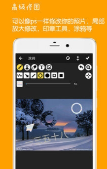 2. 高级修图功能:软件提供类似ps的局部放大修改功能,以及印章工具、涂鸦等,满足用户更复杂的修图需求。